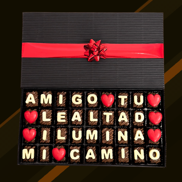 Caja de 36 brownies personalizados con el mensaje โAmigo, tu lealtad ilumina mi caminoโ ๐ซ๐