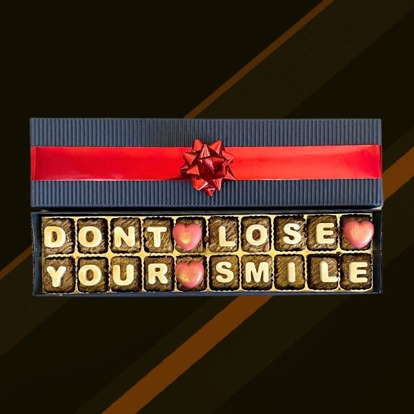 Caja de 20 brownies personalizados con el mensaje โDont lose your smileโ