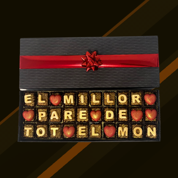 Caja de 30 brownies personalizados con el mensaje –El millor pare de tot el mon–