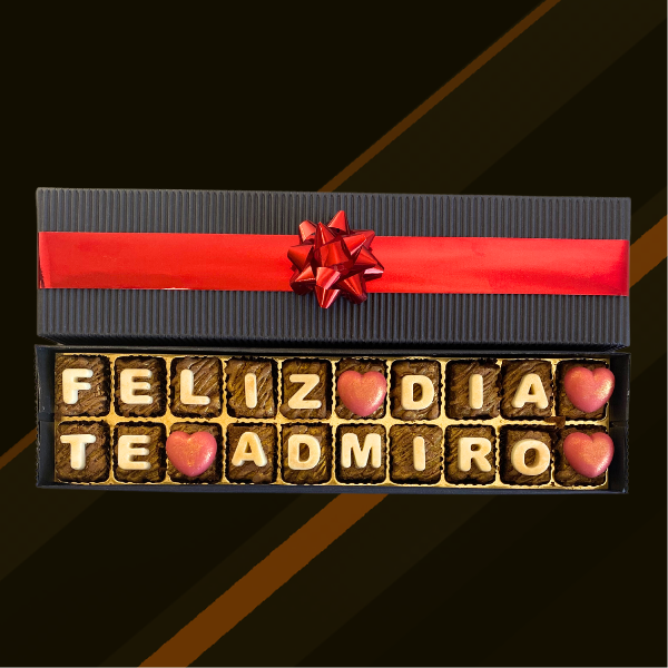 Caja de 20 minibrownies personalizados con el mensaje โFeliz dia te admiroโ