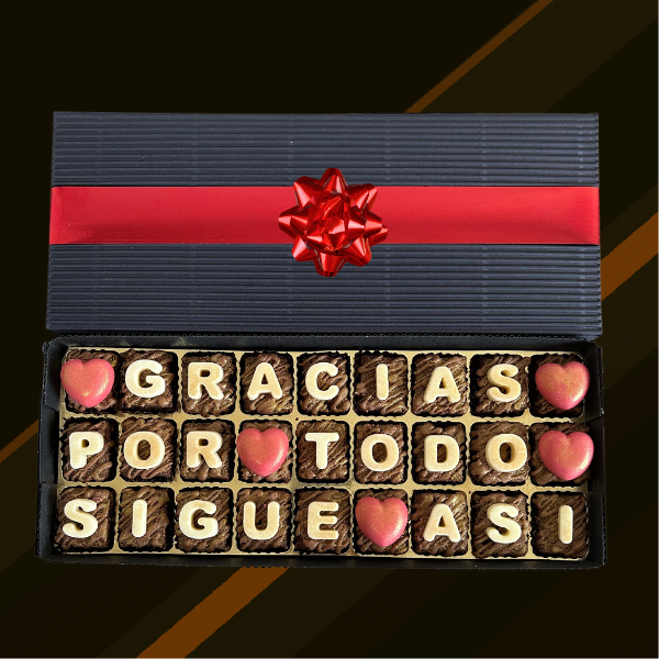 Caja de 27 minibrownies personalizados con el mensaje โGracias por todo sigue asรญโ