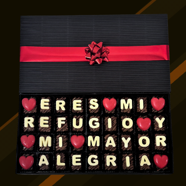 Caja de 36 brownies personalizados con el mensaje “Eres mi refugio y mi mayor alegria” 🍫🎉