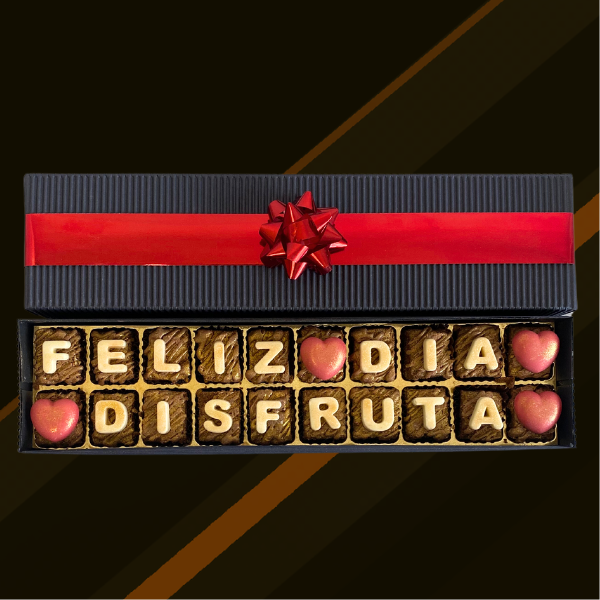 Caja de 20 minibrownies personalizados con el mensaje –Feliz dia disfruta–