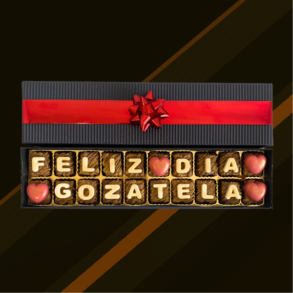 Caja de 20 minibrownies personalizados con el mensaje –Feliz dia gózatela–