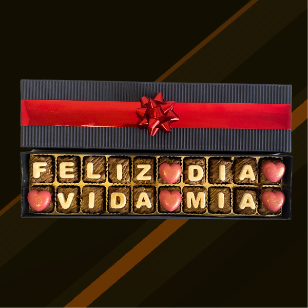 Caja de 20 minibrownies personalizados con el mensaje โFeliz dia vida miaโ