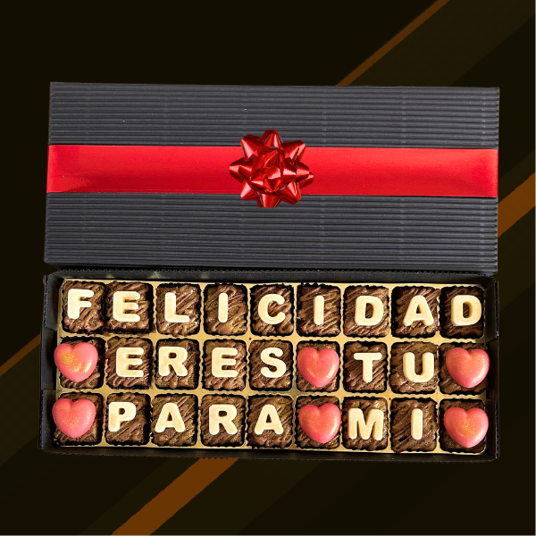 Caja de 27 minibrownies personalizados con el mensaje –Felicidad eres tú para mi–
