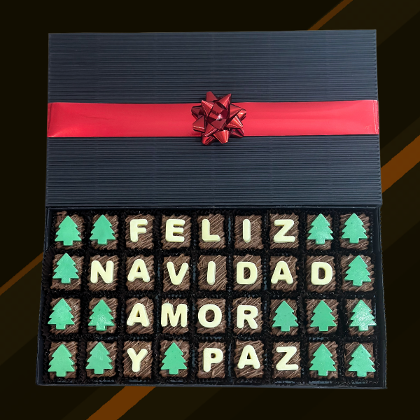 Caja de 36 brownies personalizados con el mensaje โFeliz navidad, amor y pazโ ๐ซ๐