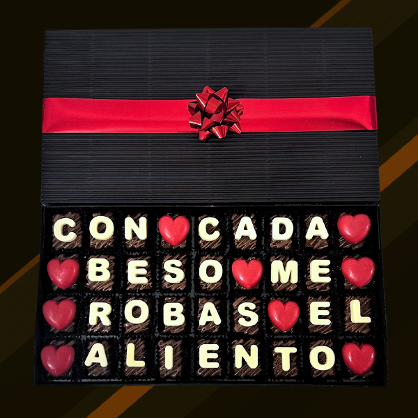 Caja de 36 brownies personalizados con el mensaje โCon cada beso me robas el alientoโ ๐ซ๐