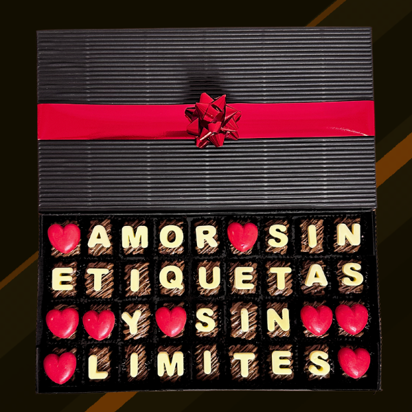 Caja de 36 brownies personalizados con el mensaje โAmor sin etiquetas y sin limitesโ ๐ซ๐